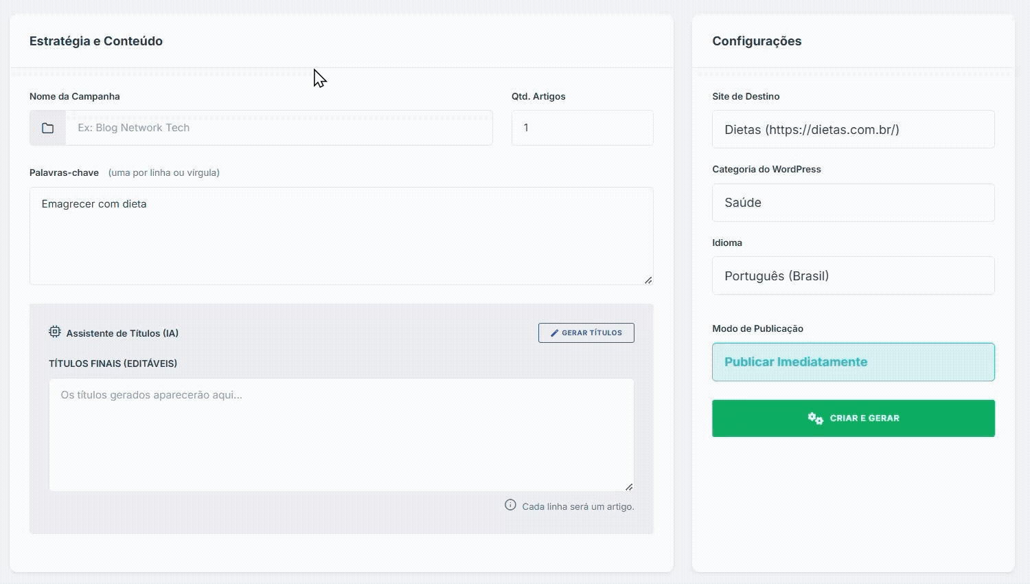 Você perde horas gerando texto no ChatGPT, copiando para o WordPress, caçando imagens e configurando tags. O Orquestra resolve isso com alguns cliques.