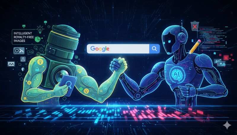 Imagens royalty-free inteligentes vs IA gerada: Qual ranqueia melhor em 2026?